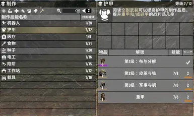 《七日杀》简化制作技能MOD,这个模组是简化制作技能,大多数制作技能只需要阅读一本书即可解锁下一个级别或物品。