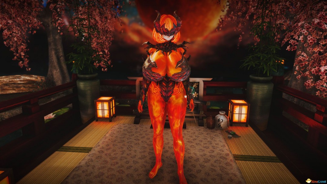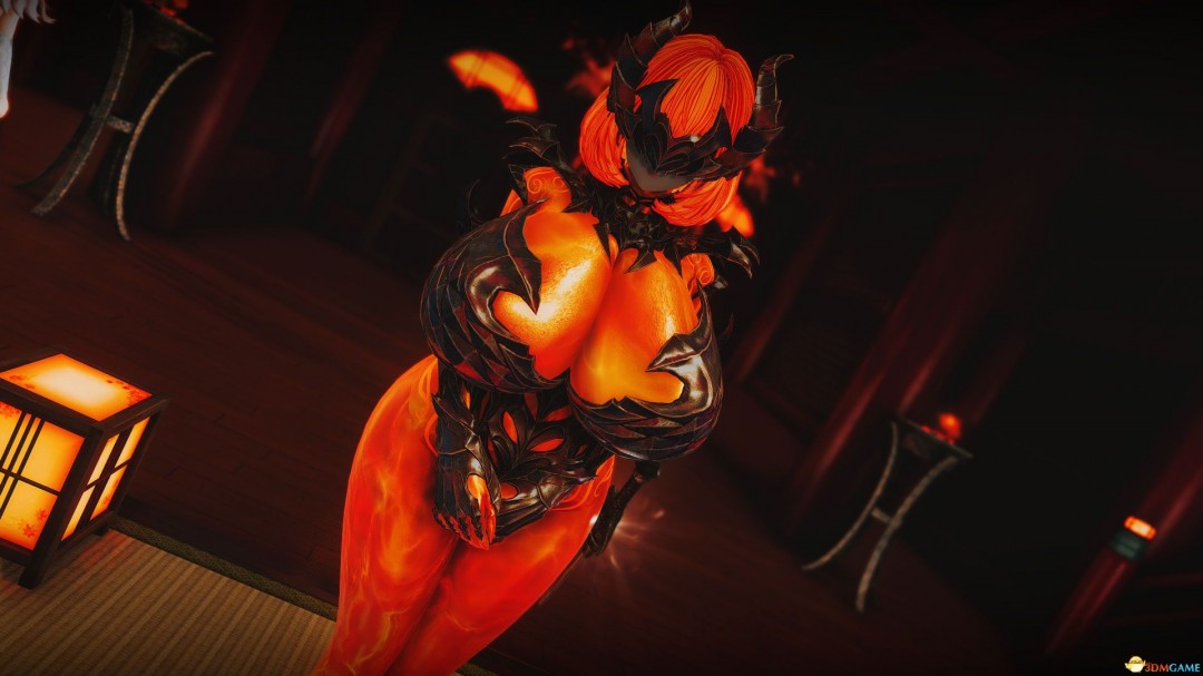 1、让你的女随从穿上火焰之主套装,适应 CBBE 3BA 身形,衣服附带物理特性。