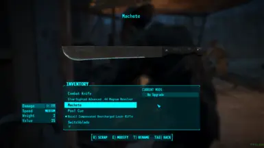 《辐射4》黑白武器重新纹理MOD,这个模组为你的游戏添加了具有黑白纹理的枪支皮肤外观,重新纹理包括:弹簧刀,战斗刀,革命性剑,行走手杖,台球。