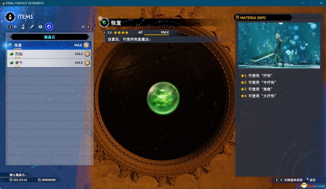 《最终幻想7:重生》初始LV70全道具99存档。正如其名,这款补丁是初始存档,等级升到70级,金钱最大、全道具解锁99,让你的冒险更加轻松!感兴趣的玩家可以到3DM下载。