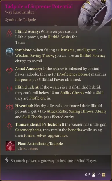 《博德之门3》伊利斯德自治领MOD,一个简单的mod,Illithid 寄生虫不仅仅是一种诅咒——它是一种权力工具,是通往更伟大事物的门户。Illithid Dominion 允许您控制自己的转变,根据您的意愿弯曲蝌蚪的潜力。