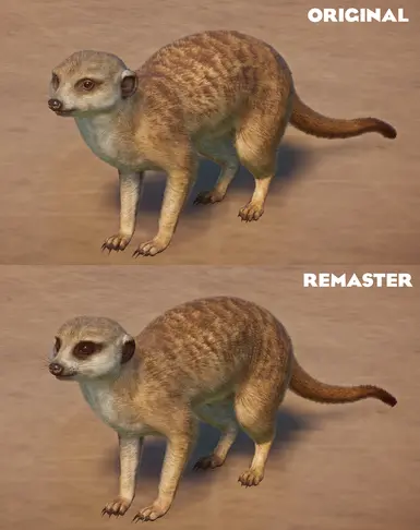 《动物园之星》猫鼬新变体MOD,这个模组包括对 Adults 和 Juvenile Meerkat 的改进。面部纹理已重新绘制,鼻子、下巴、眉毛和脸颊上添加了胡须,头部和眼睛的形状已调整,眼睛纹理已重新绘制。