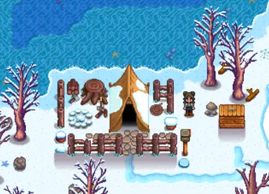 《星露谷物语》帐篷生活MOD,一个简单的mod,改变农舍的外观,将其改造成带有季节性野营装饰的帐篷。有绿色和橙色两种颜色。绿色在森林环境中很好,橙色在海滩农场看起来完美。