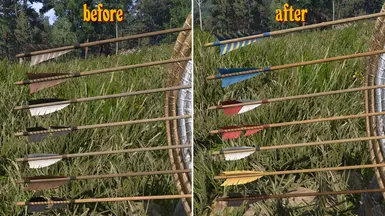 《天国:拯救2》箭头和螺栓重新纹理MOD,重新着色箭头和螺栓的纹理。还添加了狩猎箭的纹理,默认为 4 支箭(粗箭、普通箭和两支狩猎箭)的一个纹理。现在是 1 对 2。
