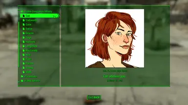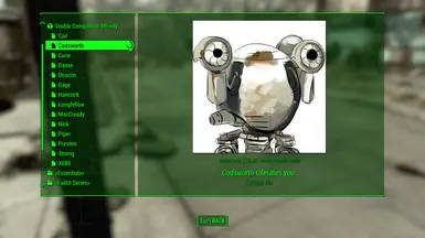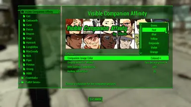《辐射4》可见的伙伴亲和力MOD,CDante 的 Visible Companion Affinity 的全功能 MCM 设置菜单。查看 MCM 中的所有同伴亲和力和肖像。还添加了一个方便的热键来打开亲和力列表菜单。