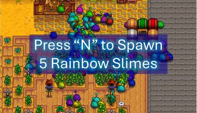 《星露谷物语》史莱姆生成器MOD,这个模组为你的游戏添加了史莱姆生成器,按“N”并在玩家位置生成 5 个彩虹史莱姆。
