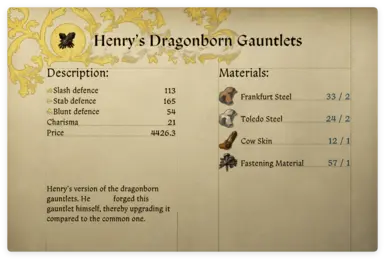 《天国:拯救2》亨利的龙骨盔甲MOD,一个简单的mod,会自动添加到您的手工制作页面中,如果没有,请访问库滕堡,在拉德尼尼广场(Radnicni Square)找到武器。
