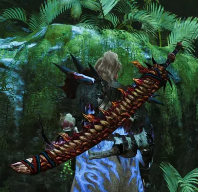 《怪物猎人:荒野》老山龙太刀MOD,这个模组为你的游戏添加了来自 《怪物猎人oline》中的老山龙太刀外观,替换了游戏中的铁刀外观!