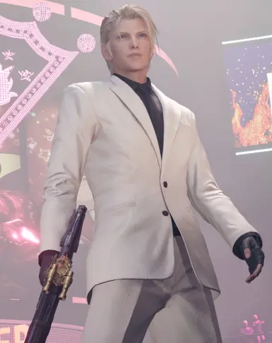 《最终幻想7:重生》西装革履鲁弗斯MOD,一个简单的mod,这个 Mod 给 Rufus 在游戏中的服装换成了西装。白色西服,华丽高贵。