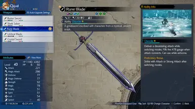 1、模型替换了 Cloud 的符文之刃模型,同时保留了符文之刃的属性和武器技能。