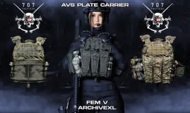 《赛博朋克2077》AVS板架MOD,707 AVS 板架为 Fem V 改装。提供多迷彩、黑色和新橄榄色(仅限背心)。档案 XL。