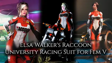 《赛博朋克2077》浣熊大学赛车服MOD,这个模组为你的游戏添加了浣熊大学赛车服外观,仅限 FEM V!!