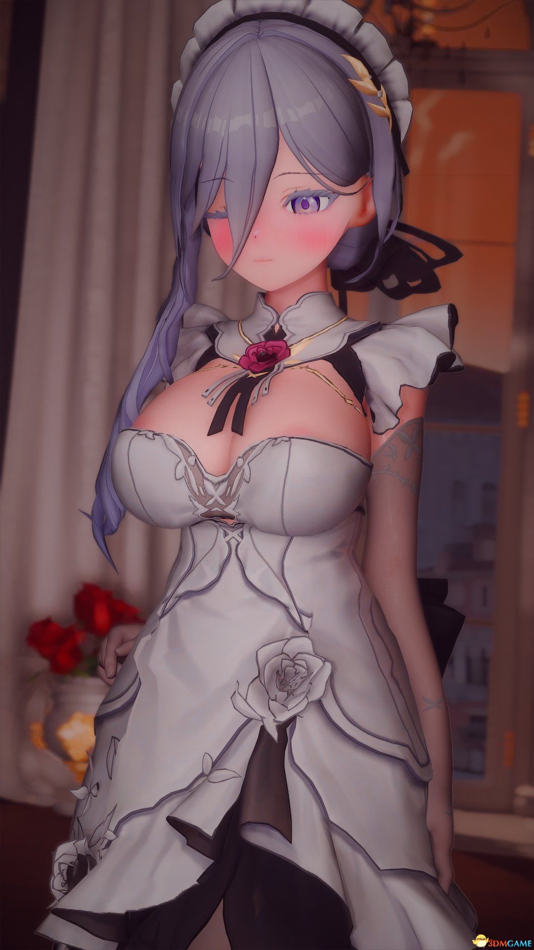 1、让你的女随从穿上深空之眼塞勒涅女仆套装,适应 CBBE 3BA 身形,衣服附带物理特性。