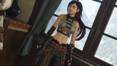 《最终幻想7:重生》蒂法拉维尔僧侣服装MOD,给 Tifa 一个来自 Ever Crisis 的 Amarant Guise 服装的发型,以及来自 First Soldier 的(未发布?)僧侣服装。