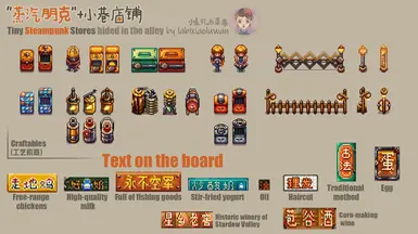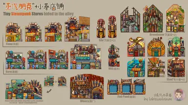 《星露谷物语》蒸汽朋克农场建筑MOD,小蒸汽朋克商店隐藏在小巷里。蒸汽朋克+小巷店铺=随意组合,打造一个市井气息浓厚的商业街。