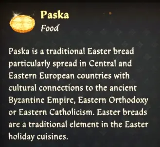 《天国:拯救2》帕斯卡面包MOD,Paska 是一种传统的复活节面包,特别分布在与古代拜占庭帝国、东正教或东天主教有着文化联系的中欧和东欧国家。复活节面包是复活节节日美食中的传统元素。