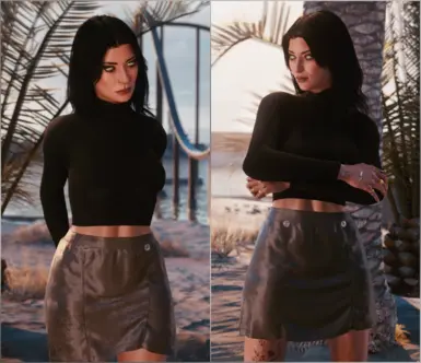 《赛博朋克2077》女朋友装MOD。这个模组为你的游戏添加了女朋友装外观,高领毛衣、裙子。8 种颜色 + 带贴纸的版本。