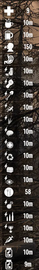 《七日杀》10分钟增益食物MOD,香草食物 Mod 增益。将增益的持续时间增加到 10 分钟。损失 3 分钟的 Debuff 水 = 大约损失 10 水。