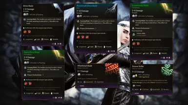 《博德之门3》精灵武器刀锋外观MOD,向游戏中添加一组新的自定义武器。他们修改了长剑规则,添加了新的和编辑弯刀的视觉效果。包括基本型号和具有特殊规则的神奇版本。尝试保持基本游戏的平衡,同时添加有趣和酷炫的物品。