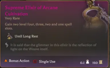 《博德之门3》更强的奥术药剂MOD,一个简单的 Mod,可以通过多种方式增强法术槽 elixirs。第一个增益是每个 elixir 现在提供两个对应的 elixir 等级的槽位,而不是一个。第二个增益是 Elixir 的每个等级还会为每个较低等级的 elixir 提供额外的槽位,这意味着 2 级 elixir 提供两个二级和一级法术槽,一直到最高等级的 elixir 每个法术槽提供两个。