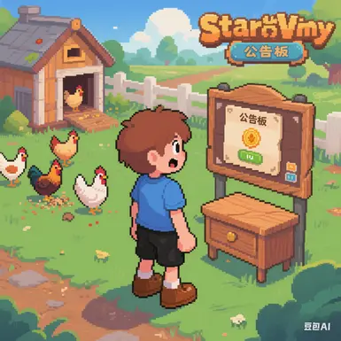 《星露谷物语》农民公告MOD,添加了一个可放置的游戏内公告板,适用于单人游戏和多人游戏。玩家可以查看和接受已发布的任务,也可以通过输入描述、奖励和截止日期来创建新任务。任务实时同步,并在完成后获得奖励。包含控制台命令,用于快速测试。