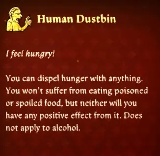 《天国:拯救2》人类垃圾桶特权MOD,你可以用任何东西来驱散饥饿。你不会吃有毒或变质的食物,但你也不会从中获得任何积极的影响。