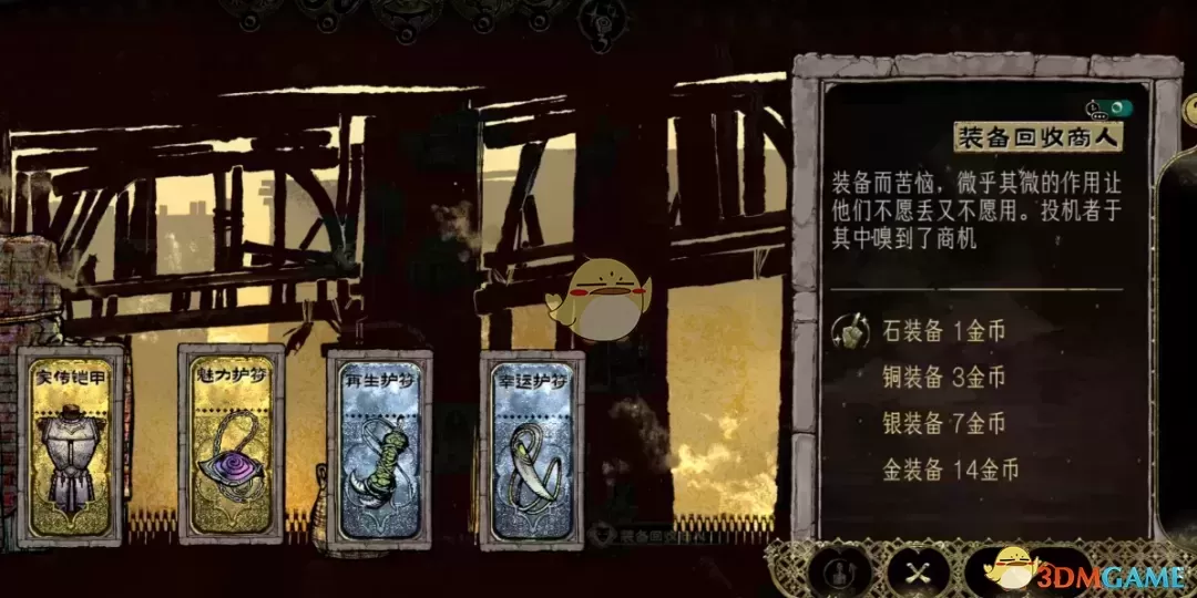 1、装备回收,八个位置,四装备格,四其他(书籍情报,消耗品)零回合,常驻。