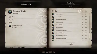 《上古卷轴4:湮灭重制版》神秘主义吸收法术MOD,吸收法术(属性、技能、生命、魔法、疲劳)现在将与神秘主义技能一起缩放,而不是恢复。它们仍将在 Anvil Mages Guild 出售。