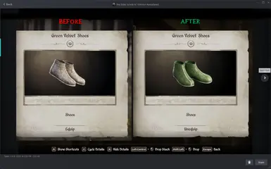 《上古卷轴4:湮灭重制版》绿色天鹅绒鞋MOD,绅士们的绿色天鹅绒鞋是个谎言。它们是棕色的,而不是绿色的。这让我很困扰,所以我更改了它以匹配女士们的鞋。