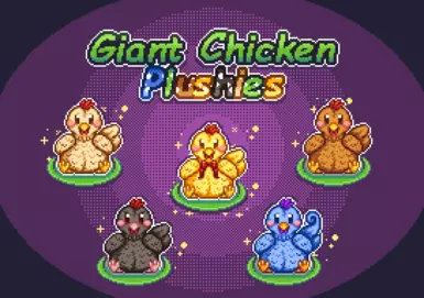 《星露谷物语》巨型鸡毛绒玩具MOD,这个模组添加了 5 个新的毛绒玩具来装饰你的家,我为每只鸡制作了毛绒玩具:白色、棕色、虚空、蓝色和金色!您可以在商店、节日和奖品机器中找到它们。