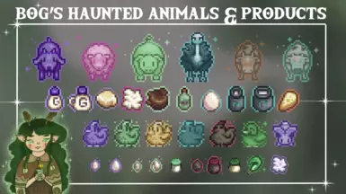 《星露谷物语》沼泽的闹鬼动物和产品MOD,所有原版星露谷物语谷仓和鸡舍动物都变成了鬼魂!配置选项以允许关闭动物或农产品。