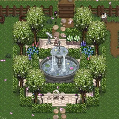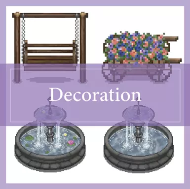 《星露谷物语》喷泉秋千浮标MOD,你添加户外家具,如秋千、喷泉、漂浮物。喷泉中带有红色框的部分去除了碰撞体积,这样农民就可以一起旅行了。让你在星露谷获得更好的物品外观!