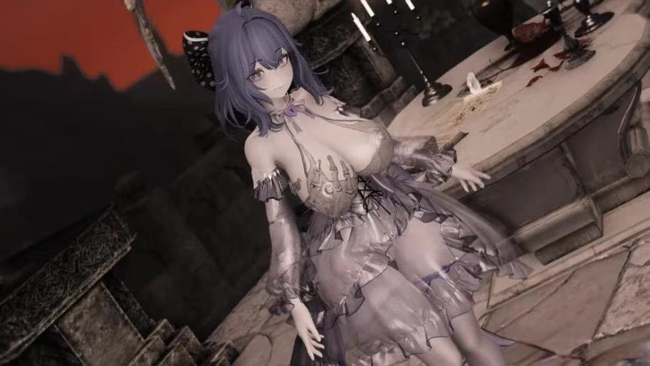 1、让你的女随从穿上依盖之书伊莎贝拉套装,适应 CBBE 3BA 身形,衣服附带物理特性。