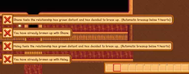 1、通过监控您与 NPC 的友谊水平,此模组允许 NPC 自主分手或离婚您。