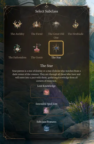 《博德之门3》术士的星际守护神MOD,自制术士子类,灵感来自同名的 4e 术士守护神。该子类有两条路径,它们都允许您更改您进行的或对您进行的掷骰的结果,以及使用巫师法术。感兴趣的小伙伴快来3DM下载吧!