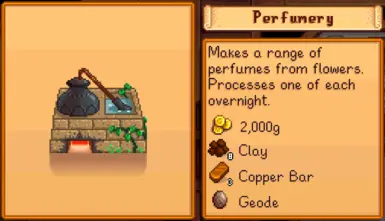 《星露谷物语》香水大楼MOD,隆重推出香水厂,这是一座新的农场建筑,可以种植各种鲜花并用它们制作香水。基于印度和波斯自古以来就使用的传统 deg bhapka 方法,您可以将大量鲜花放入左侧的大金属容器中,您的香水会将它们变成五种不同口味的香水之一,这些香水收集在右侧的小罐子里。感兴趣的小伙伴快来3DM下载吧!