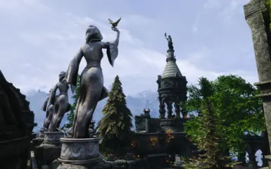 《上古卷轴5:天际重制版》蓝色宫殿露台MOD,从传说中讲,凯纳雷斯是天空、风、海洋、元素和空中看不见的精灵的女神。作为水手和旅行者的守护神,她的神圣象征是鸟。对于她的神社来说,还有什么地方比天空中一个多风的露台更好的地方呢,鸟儿熙熙攘攘,俯瞰大海呢?在这个高耸的栖息处,凯纳雷斯守护着这座城市,为到达海岸的水手们提供神圣的保护。较小的雕像描绘了她的女祭司,她们永恒的虔诚,而鸟群则体现了她的神圣存在。感兴趣的小伙伴快来3DM下载吧!