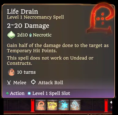 1、添加了一个新的 1 级死灵法术:生命吸取。