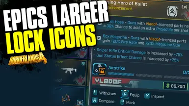 《无主之地4》更大锁图标MOD,不再眯眼了!该模组增加了配备固件的物品上锁定图标的大小,因此您可以清楚地看到哪些是锁定的,哪些是未锁定的!感兴趣的小伙伴快来3DM下载吧!