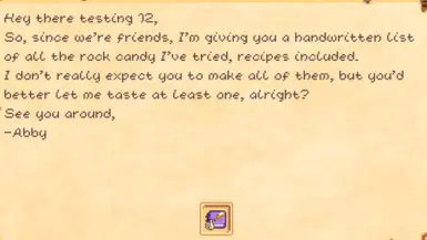 《星露谷物语》更多摇滚糖果MOD,更多的岩石糖。水果糖。更多冰糖。用水果和7糖做。食谱是Abby在4 Hearts通过邮寄寄来的。两个配方被锁定在运输特定两件物品后。感兴趣的小伙伴快来3DM下载吧!