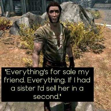 1、修改天际的商人,让他们能购买赃物。选择的商人在游戏设定中合理,并增加了一些小偷出售物品的额外场所。