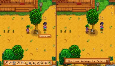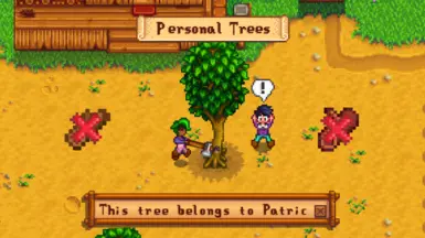 《星露谷物语》私人树木MOD,为《星露谷物语》添加了树木拥有机制。玩家种下的树属于他们,不能被他人砍倒。野生树木无人拥有,任何人都可以砍伐。非所有者试图砍树时会收到一条信息。将鼠标悬停在树上可以看到树的主人,并启用或禁用树干上的树主头像。感兴趣的小伙伴快来3DM下载吧!