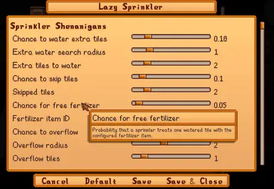 《星露谷物语》随机洒水者个性MOD,赋予你的洒水器个性——有时乐于助人,有时懒散,有时完全混乱。看着你的农场焕发生机,洒水器浇灌额外的格子,跳过水位,促进作物生长,甚至免费施肥!感兴趣的小伙伴快来3DM下载吧!