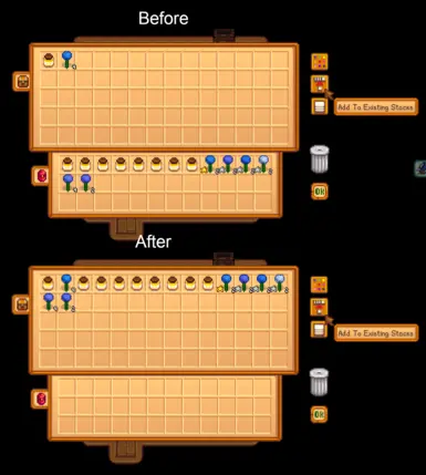 1、如果你有调味蜂蜜、多色或多品质的花朵,如果箱子里现有物品颜色/品质/味道不同,你就不能自动将它们加入带有“添加到现有堆栈”的箱子里。这个模组让你可以做到。
