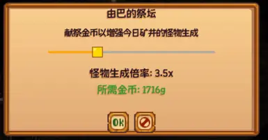 《星露谷物语》由巴的祭坛MOD,这个模组在矿井入口发现由巴的祭坛!献祭金币动态提升当日怪物生成倍率(1x-10x)。倍率越高费用越贵,基于总收入和惩罚指数计算。感兴趣的小伙伴快来3DM下载吧!