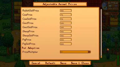 《星露谷物语》可调动物价格MOD,这个模组可以把动物和宠物的价格调到更实惠的,或者如果你想挑战,可以把价格调到更贵的。对于合作和谷仓动物,你可以根据自己的价值调整买卖价格。在设置框里输入动物价值的一半(因为玛妮收费是输入价值的两倍),然后点击保存。如果在玛妮的位置,退出再重新进入,价格就会生效。感兴趣的小伙伴快来3DM下载吧!