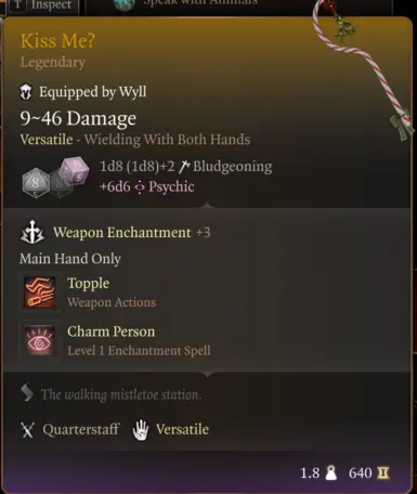 《博德之门3》移动槲寄生MOD,游戏中增加了一根圣诞节主题的长棍,上面挂着槲寄生。装备它或掉落地面当道具!感兴趣的小伙伴快来3DM下载吧!