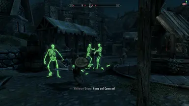 1、将《天际》中的骷髅敌人变成诡异的镭绿色发光亡灵,在黑暗的地下城和废墟中格外醒目。