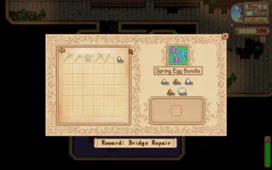 《星露谷物语》超级放松的蛋包MOD,大多数捆绑包只需要5个普通或大蛋,但有些需要优质蛋、异域蛋或其他与蛋相关物品。每个包裹只有一个方格,你可以用任何列出的蛋或蛋相关的物品填满。它大多很放松,你可以按自己的节奏完成,但后期的一些游戏包会更有挑战性......!感兴趣的玩家快来3DM下载吧!