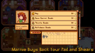 《星露谷物语》玛妮帮你买回桶和剪刀MOD,正如其名!你现在可以把你不需要的牛奶桶和剪刀卖回给玛妮了。这旨在让你在安装自动抓取器后有选择清理杂物。感兴趣的玩家快来3DM下载吧!